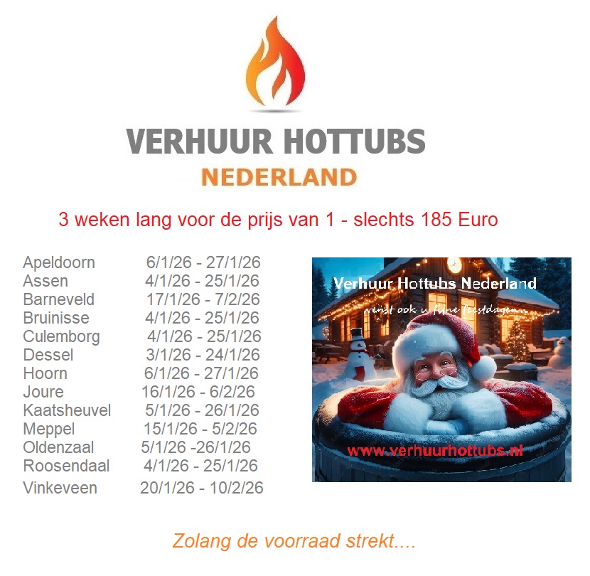 - Wij bieden houtgestookte hottubs aan in heel Nederland via een netwerk met circa 25 verhuurpunten;